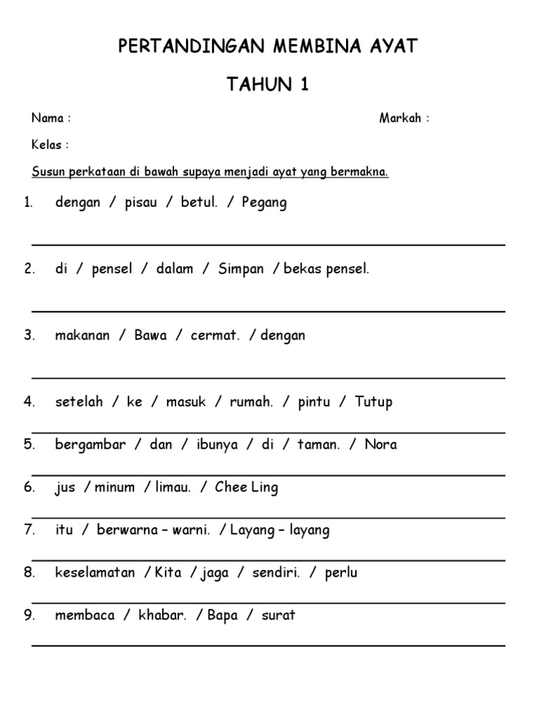 Lebih banyak bahan menarik di. Pertandingan Membina Ayat Bahasa Malaysia T2 2019 Pdf Bina Ayat Pdf Share. Lin Xue Mei.
